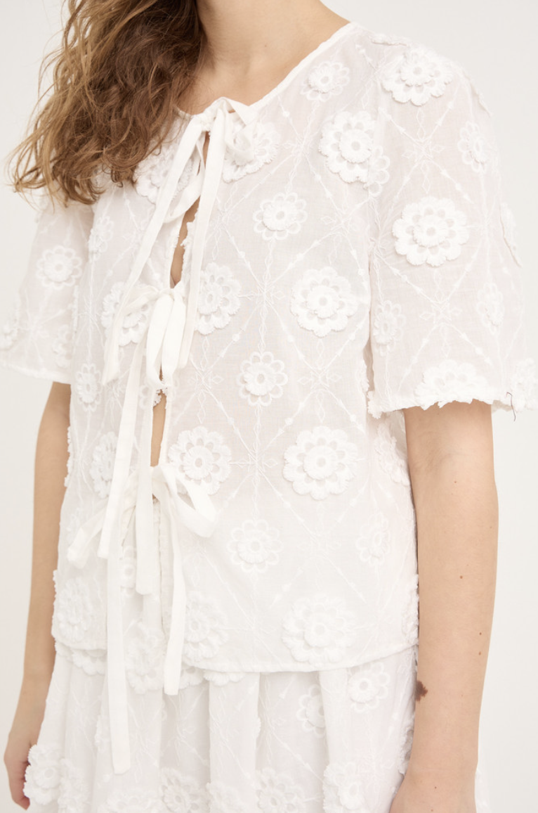 Toppen kommer med knyting i front, er gjennomsiktig, og normal i størrelsen.