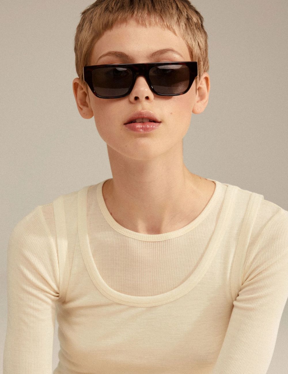 Basic vibes med en twist Solbriller i classic design med tortoise-brun innfatning og mørke glass er det perfekte tilbehøret for en avslappet sommerlook. Ønsk sommeren velkommen med dine nye must haves shades, som gir deg en stilig finish året rundt. Solbrillene er laget av minst 75 % resirkulert plast og kommer i en bærekraftig pose, som også kan brukes som pusseklut.