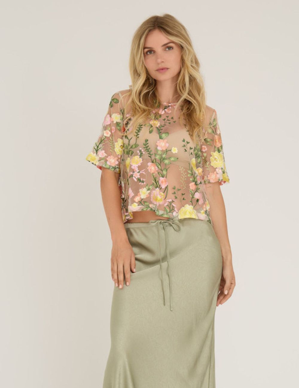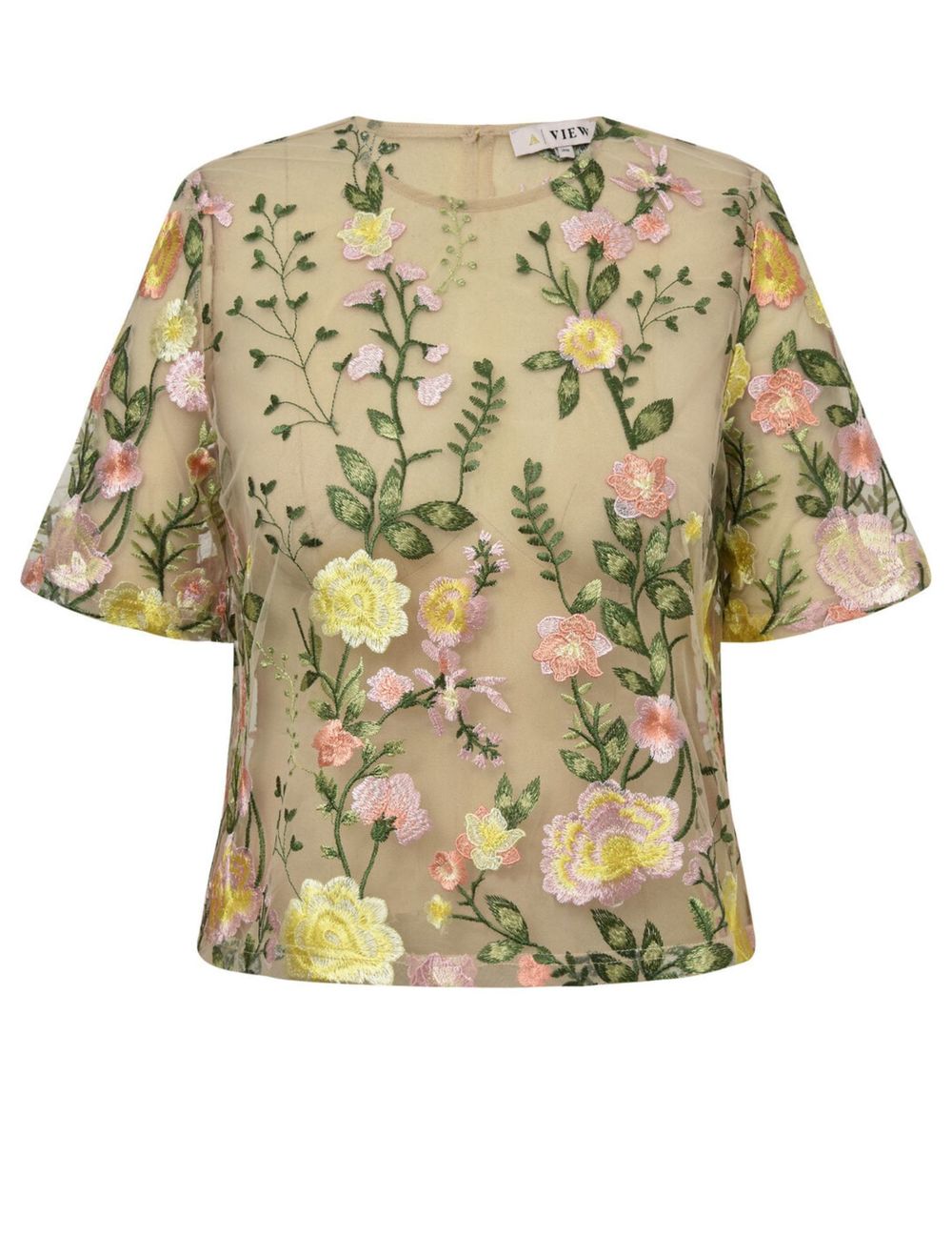 Blusen er gjennomsiktig, kort i modellen, og er normal mot liten i størrelsen.